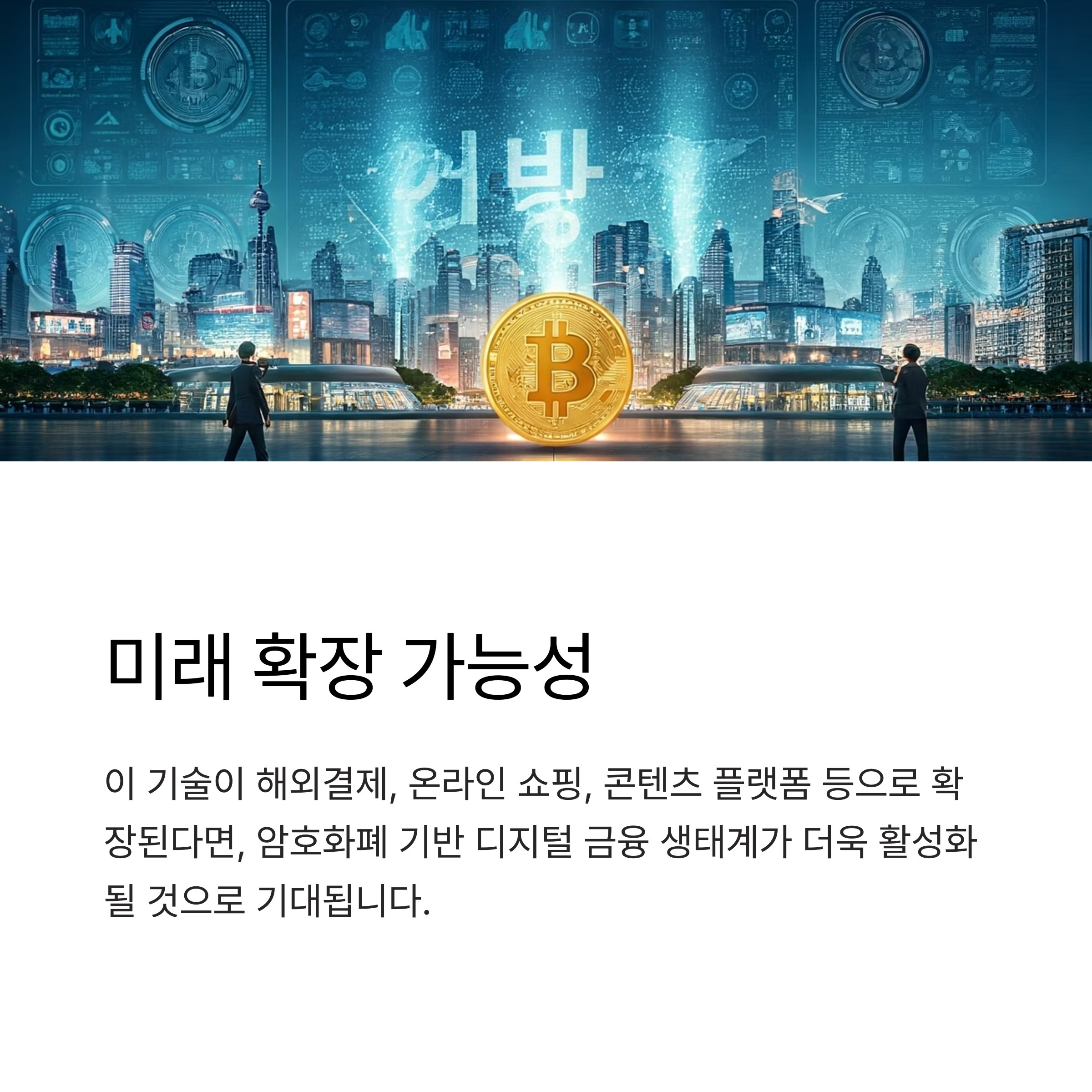 앞으로 이 기술이 해외결제, 온라인 쇼핑, 콘텐츠 플랫폼 등으로 확장된다면, 암호화폐 기반 디지털 금융 생태계가 더욱 활성화될 것으로 기대됩니다.