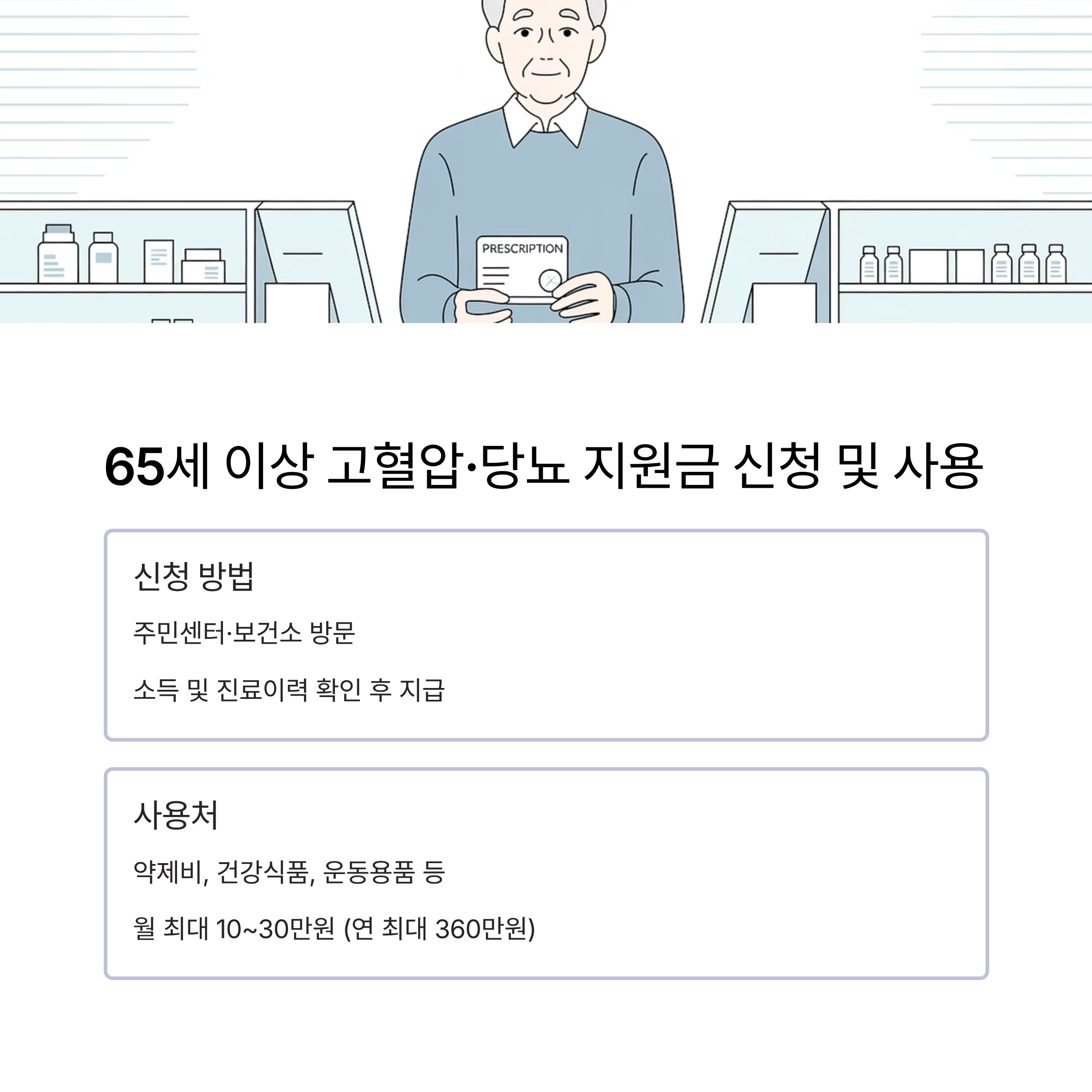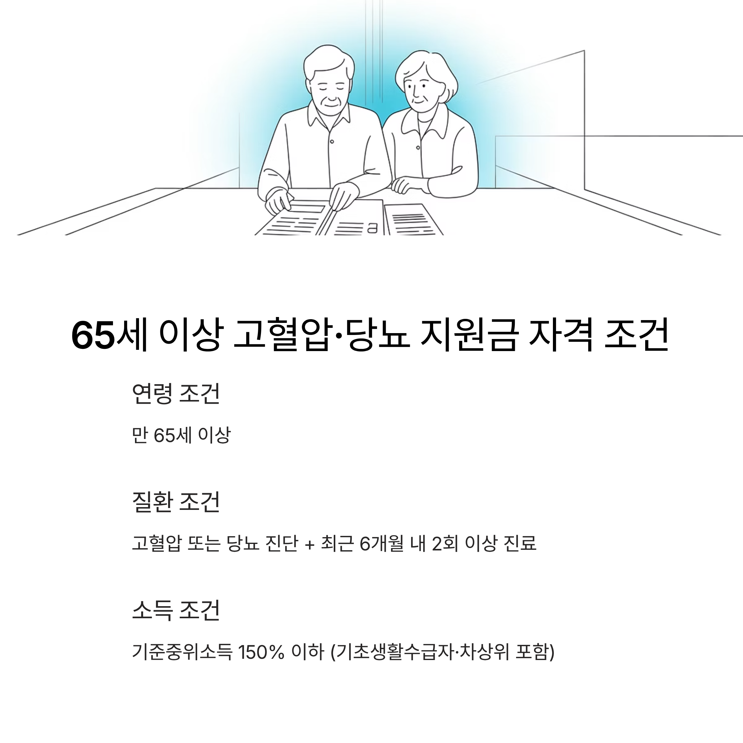 - 대상 : 만 65세 이상 + 고혈압 또는 당뇨 진단 + 최근 6개월 내 2회 이상 진료