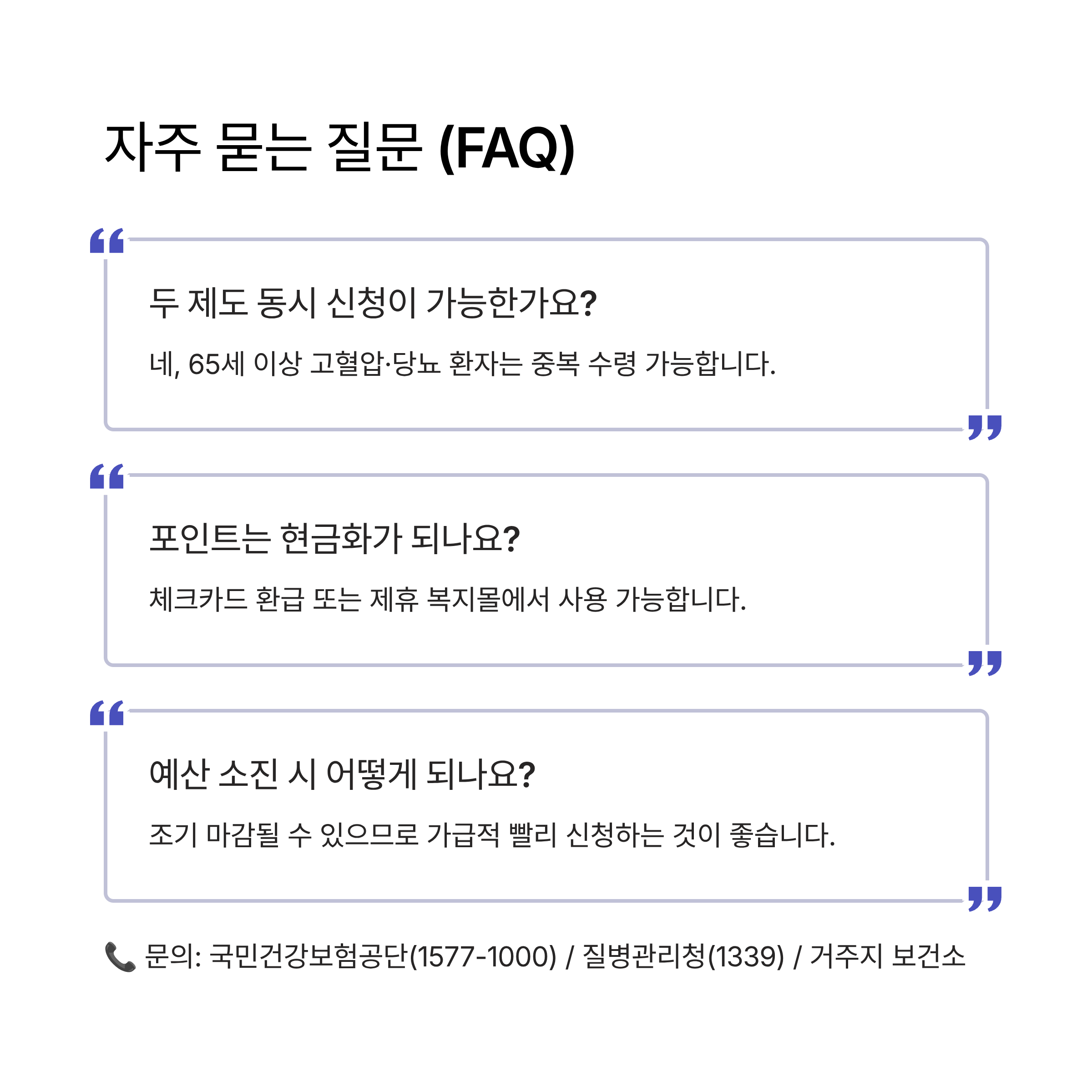 A. 네, 65세 이상 고혈압·당뇨 환자는 중복 수령 가능합니다. - Q. 포인트는 현금화가 되나요?