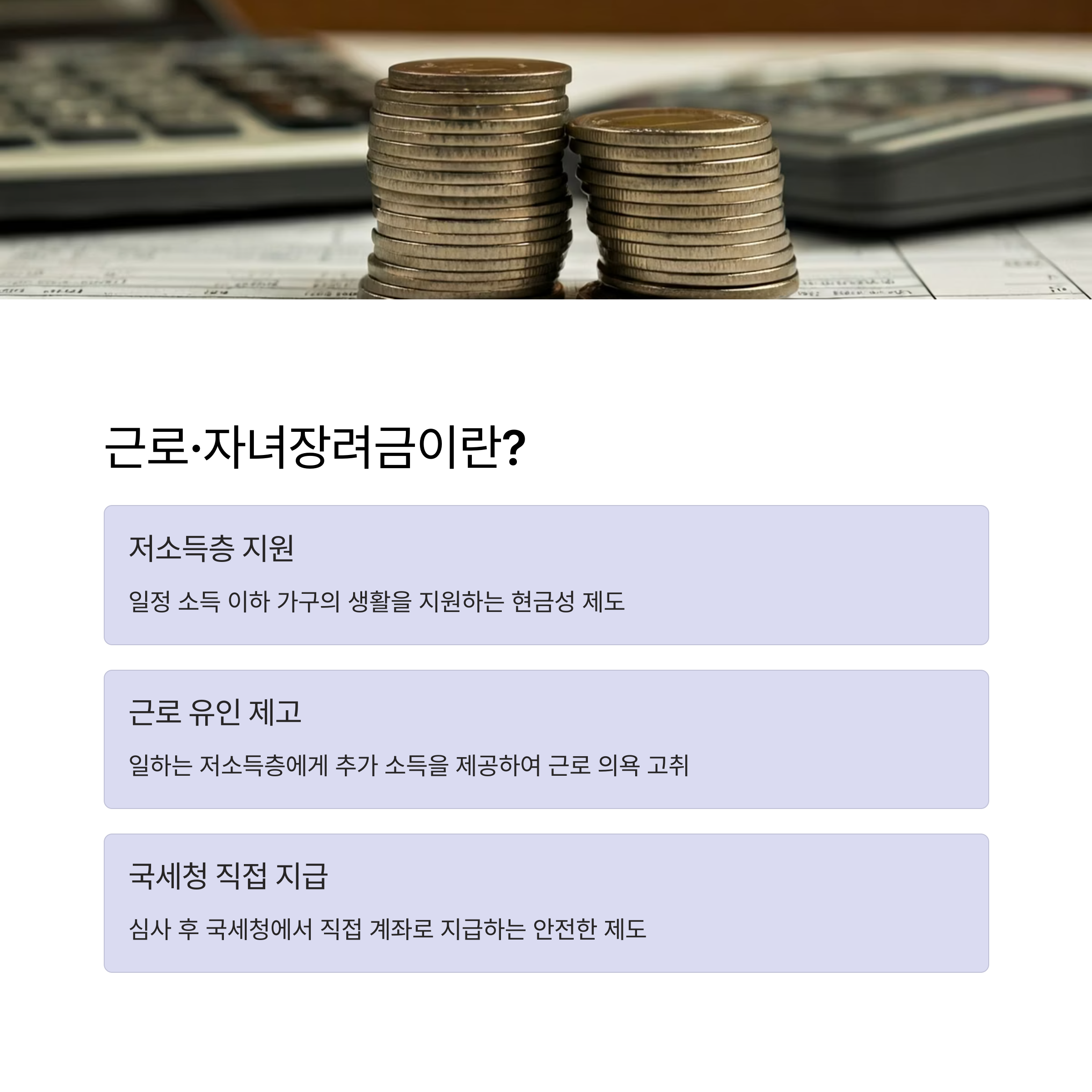 근로·자녀장려금은 저소득층의 생활을 지원하고 근로 유인을 높이기 위한 현금성 지원 제도입니다. 일정 소득 이하의 근로자, 자영업자, 그리고 자녀가 있는 가구를 대상으로 국세청에서 직접 지급하며, 가정의 실질적인 생활비에 도움을 주는 것이 특징입니다. 소득 요건, 재산 요건, 가구 구성에 따라 차등 지급되며, 많은 가구에서 연간 수백만 원의 장려금을 수령하고 있습니다.