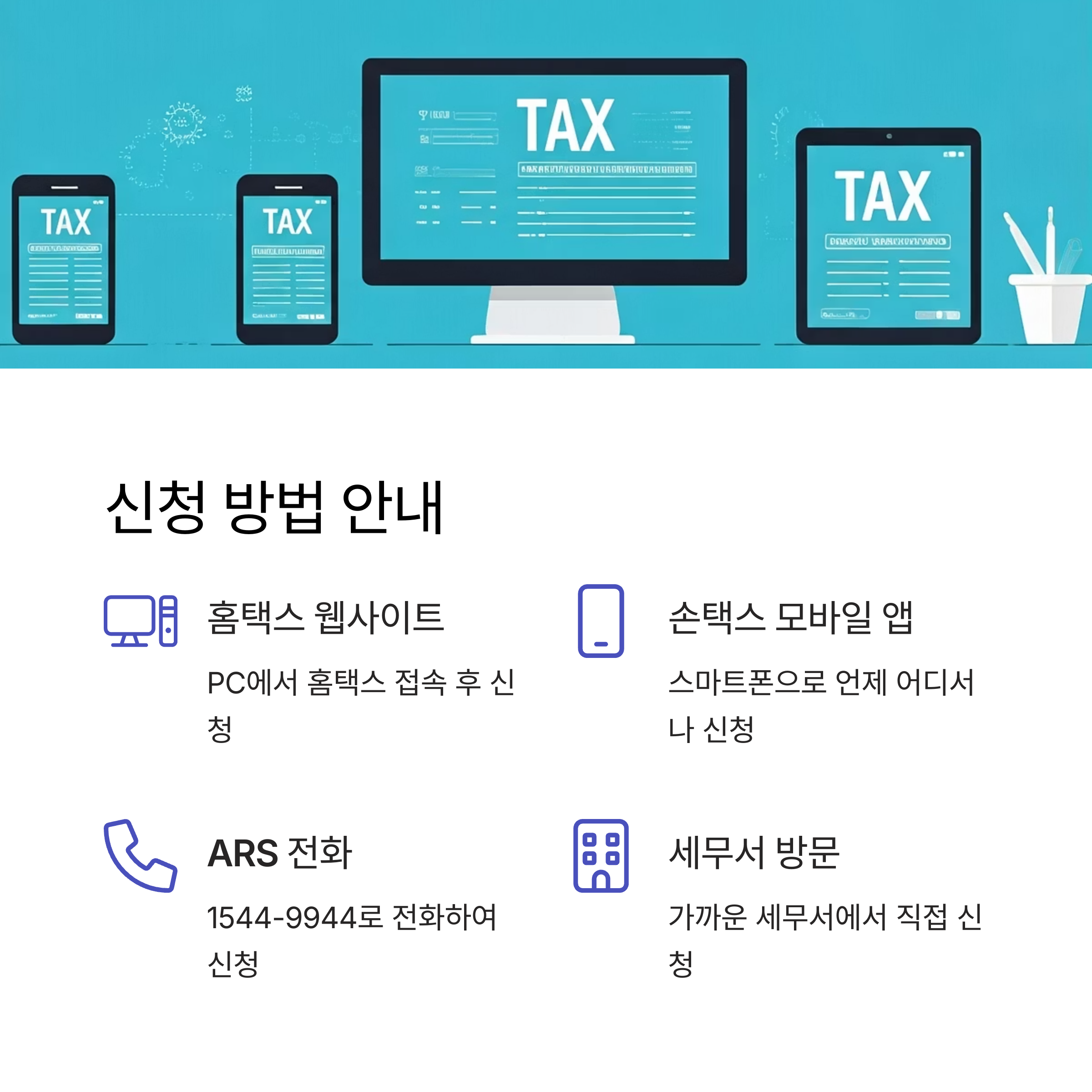 | 신청 방법 | 홈택스, 손택스 앱, 전화 ARS, 세무서 방문 가능 |