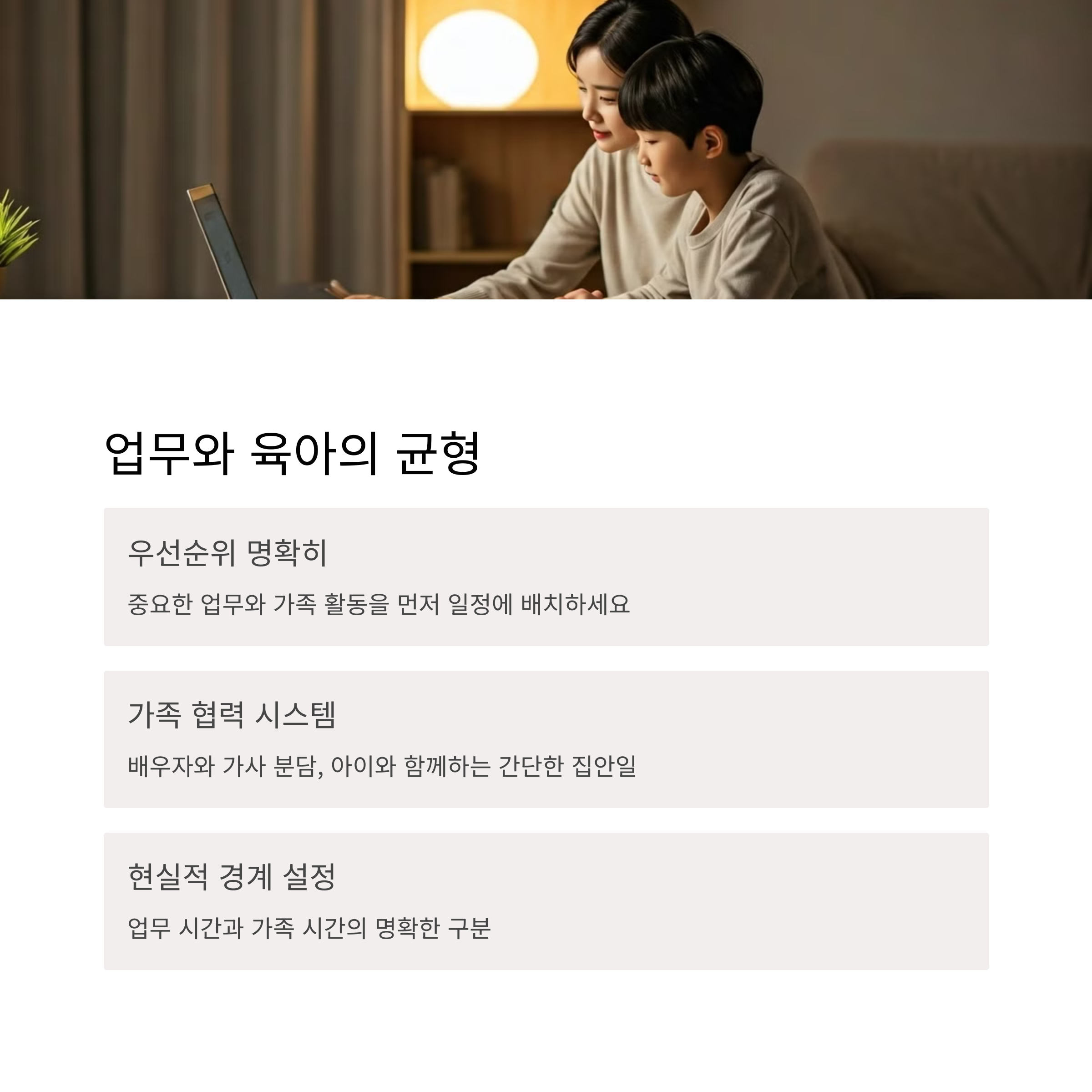 | 아침, 퇴근 후, 잠자리 루틴 구성 | 완벽보단 지속 가능한 리듬 유지 | 육아는 함께할 때 더 행복해짐 |