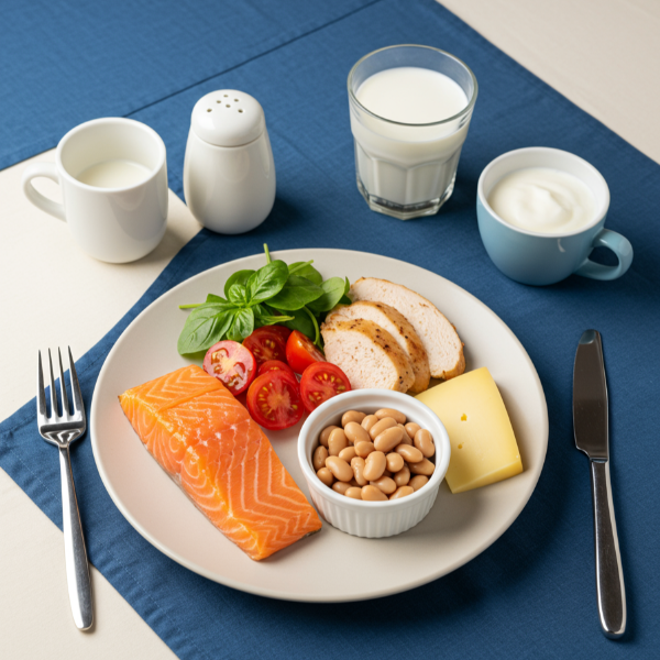 - 칼슘 & 비타민D: 치즈, 요거트, 연어