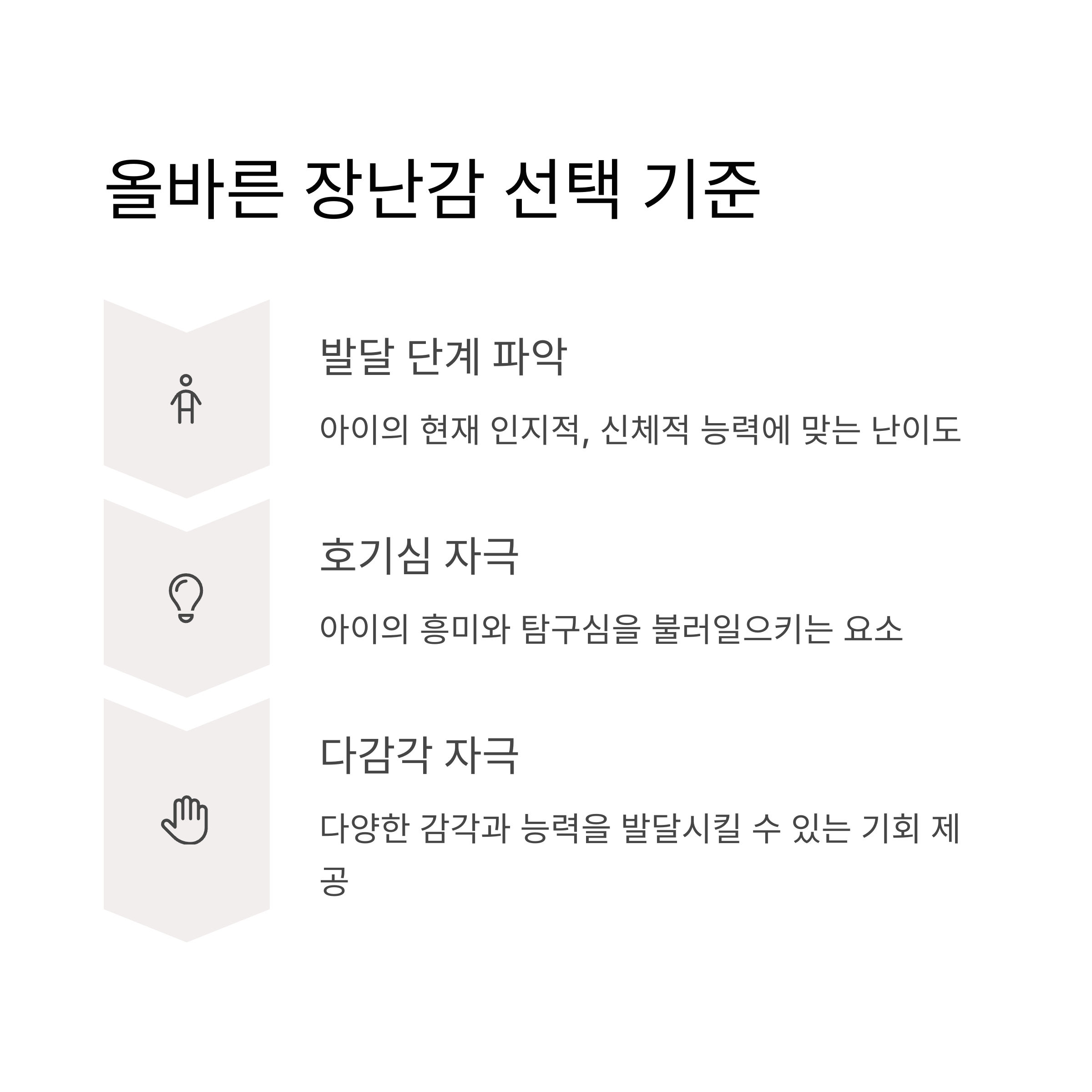 | 장난감 고르기 기준 | 아이의 나이, 발달 단계에 맞는 선택이 중요 |