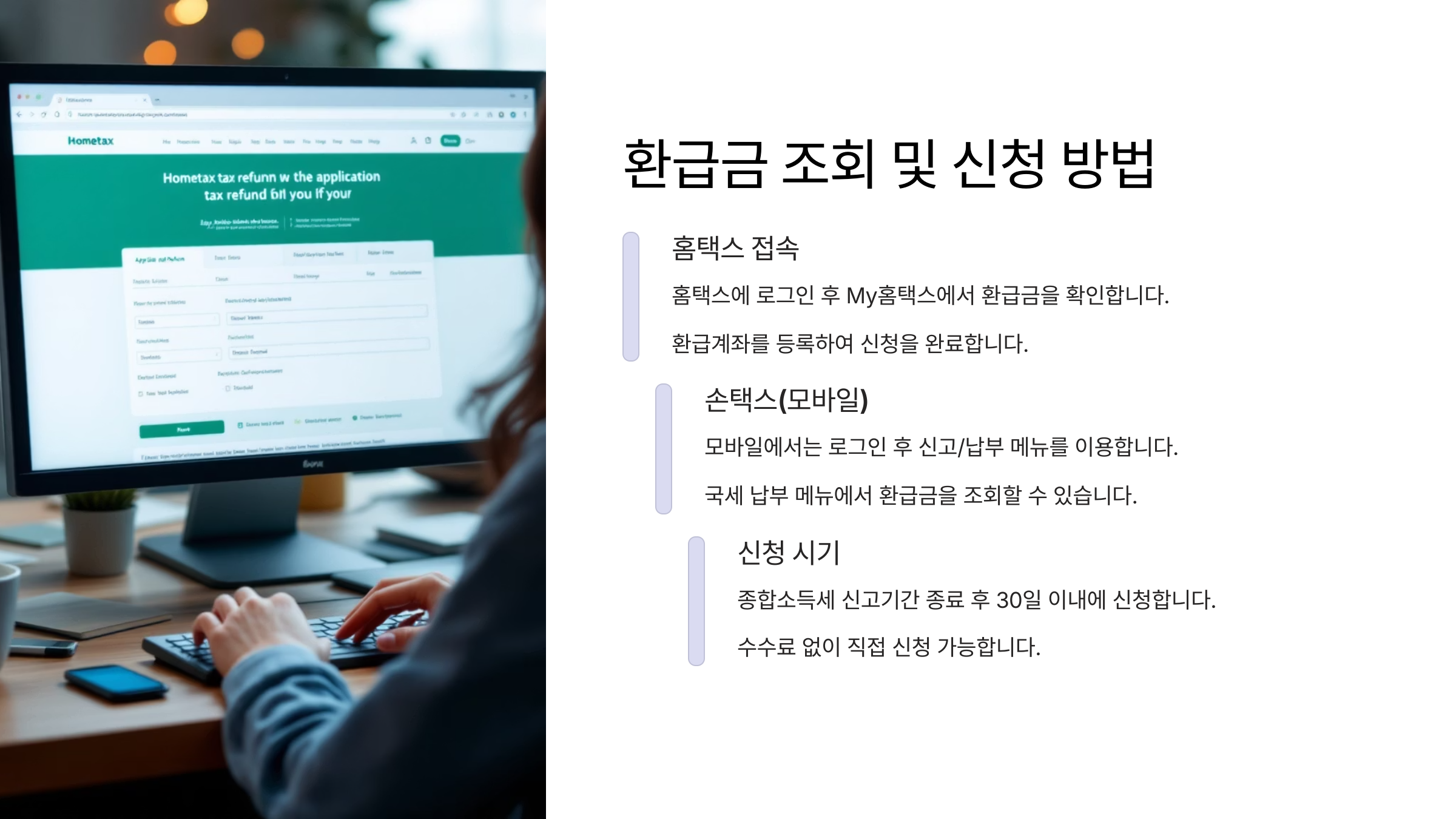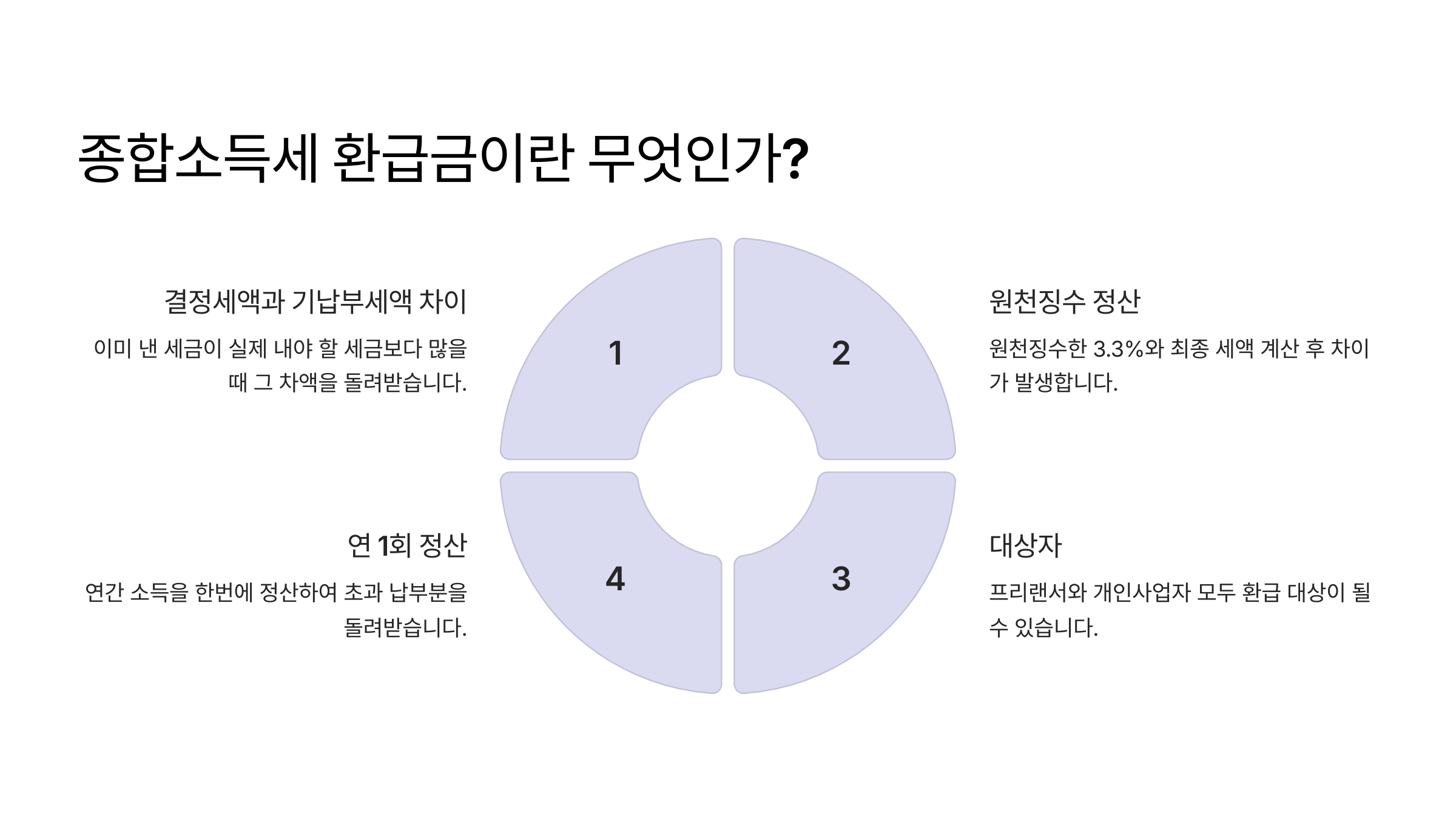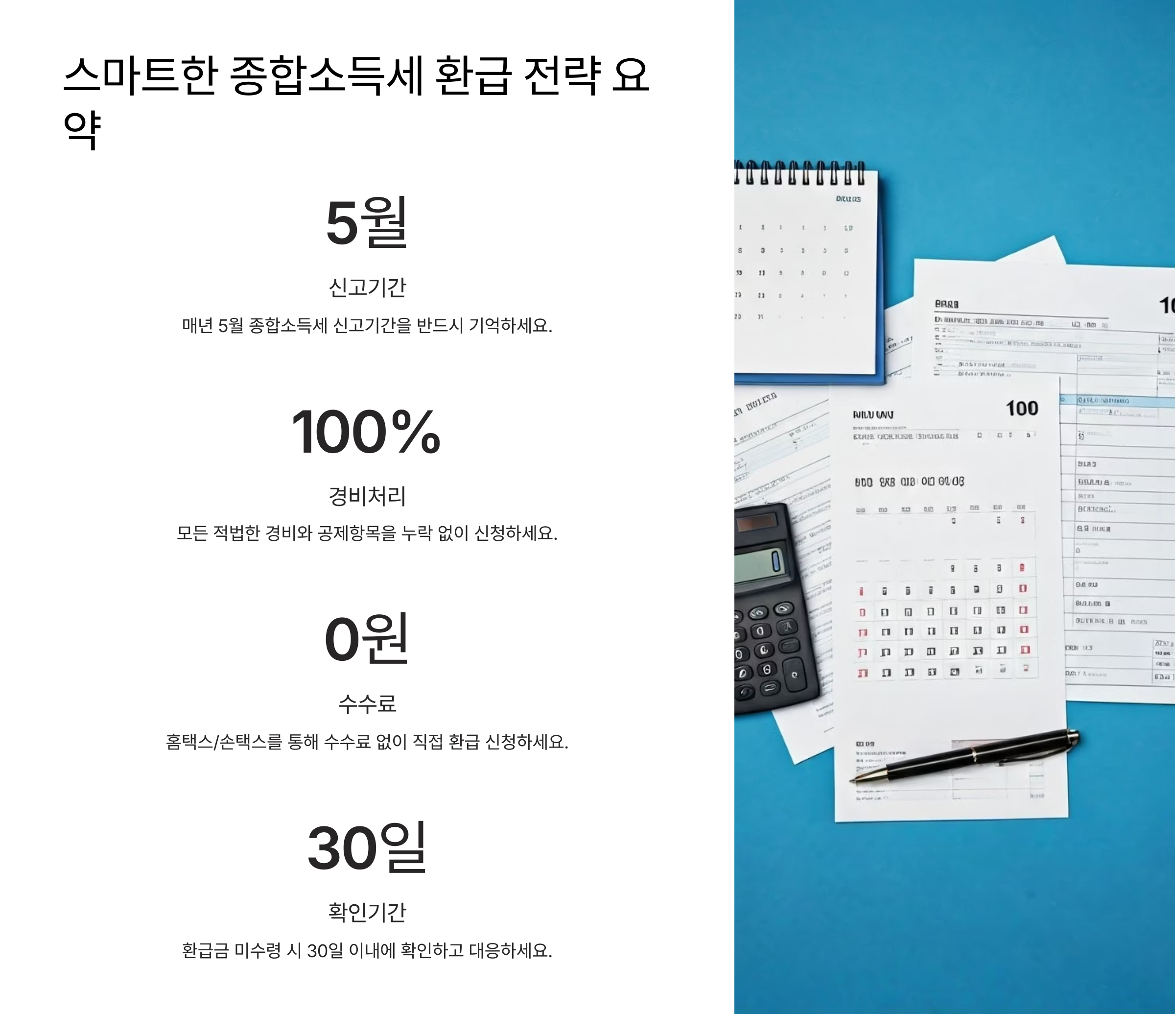 | 환급 방법 | 종합소득세 신고 시 환급 계좌 입력 → 심사 후 자동 입금 |