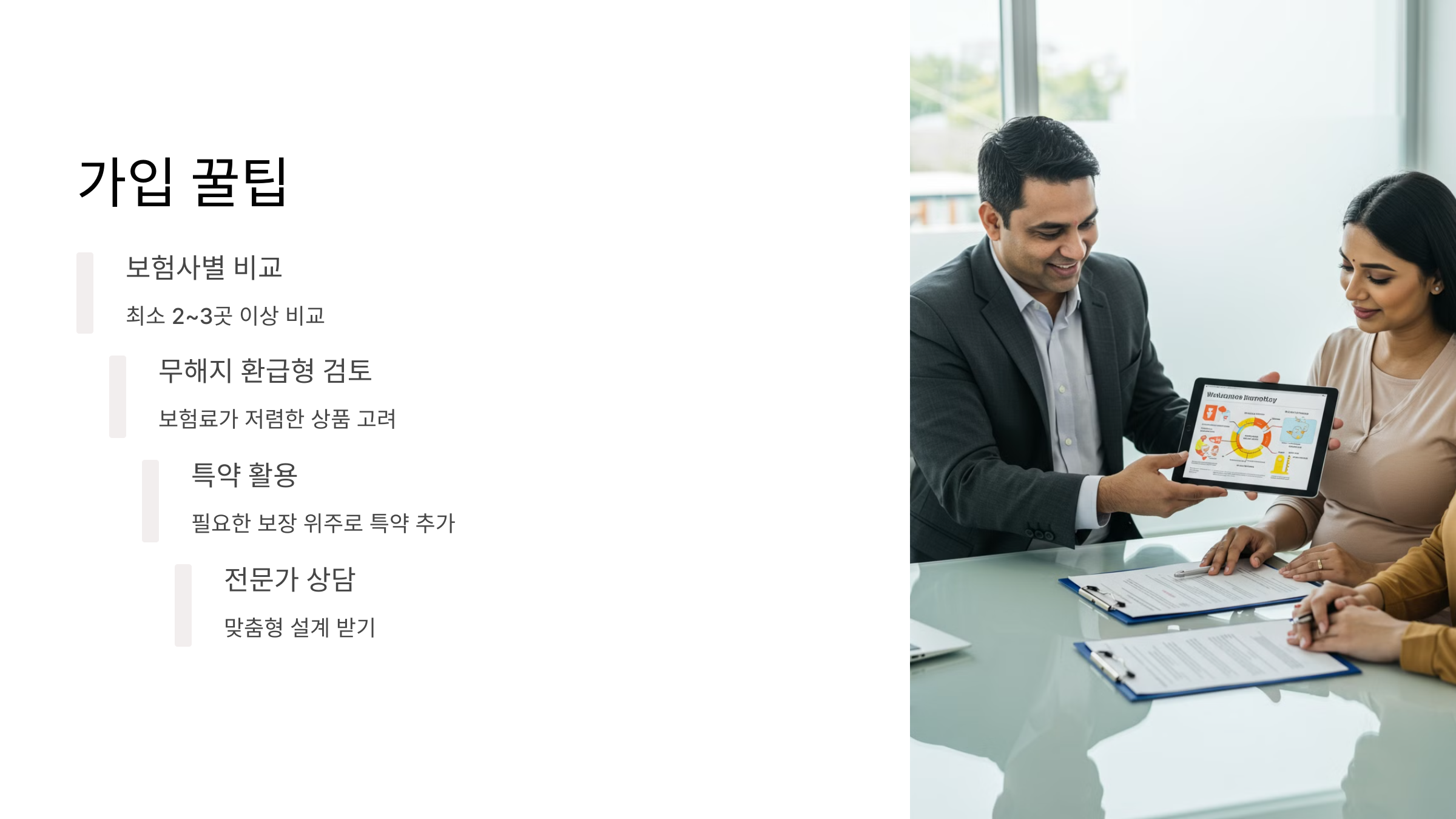 너무 늦지 않게 가입하고, 꼭 필요한 보장을 꼼꼼히 체크하는 것이 중요합니다.