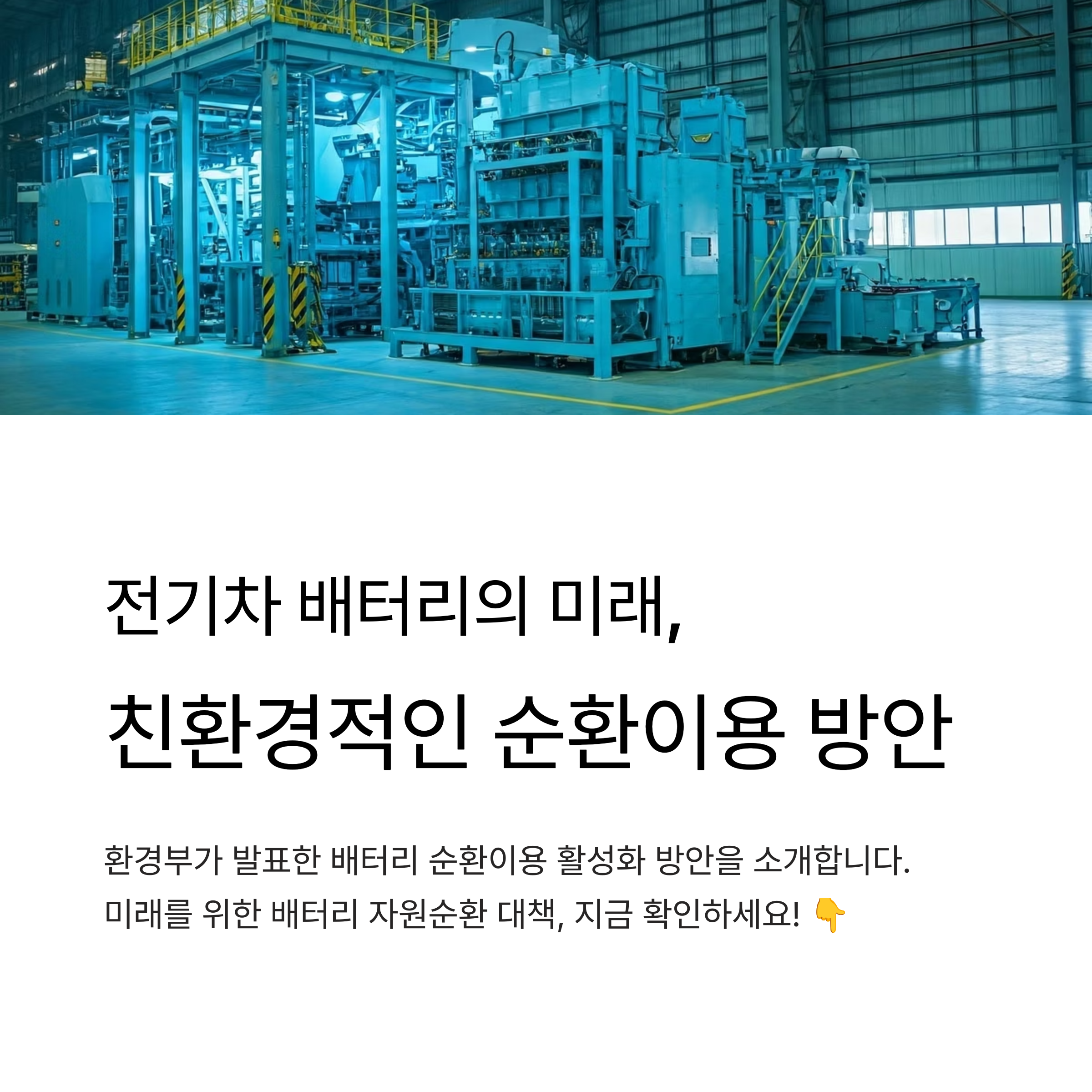 - 배터리 자원순환 클러스터 구축: 2025년 하반기까지 준공하여 순환이용 산업 전반에 걸친 실증, 분석, 인증 등에 대한 통합 지원체계를 마련합니다.