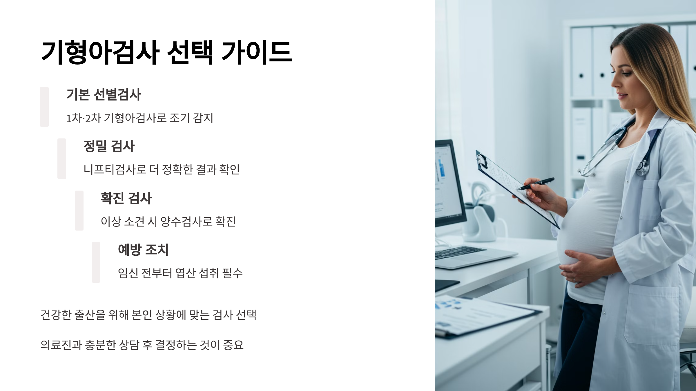 건강한 출산을 위해 본인의 상황에 맞는 적절한 검사를 선택하고, 의료진과 충분한 상담 후 결정하는 것이 가장 중요합니다.