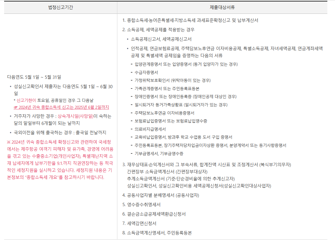 - 성실신고확인 대상자: 2025년 6월 30일까지 연장 가능
