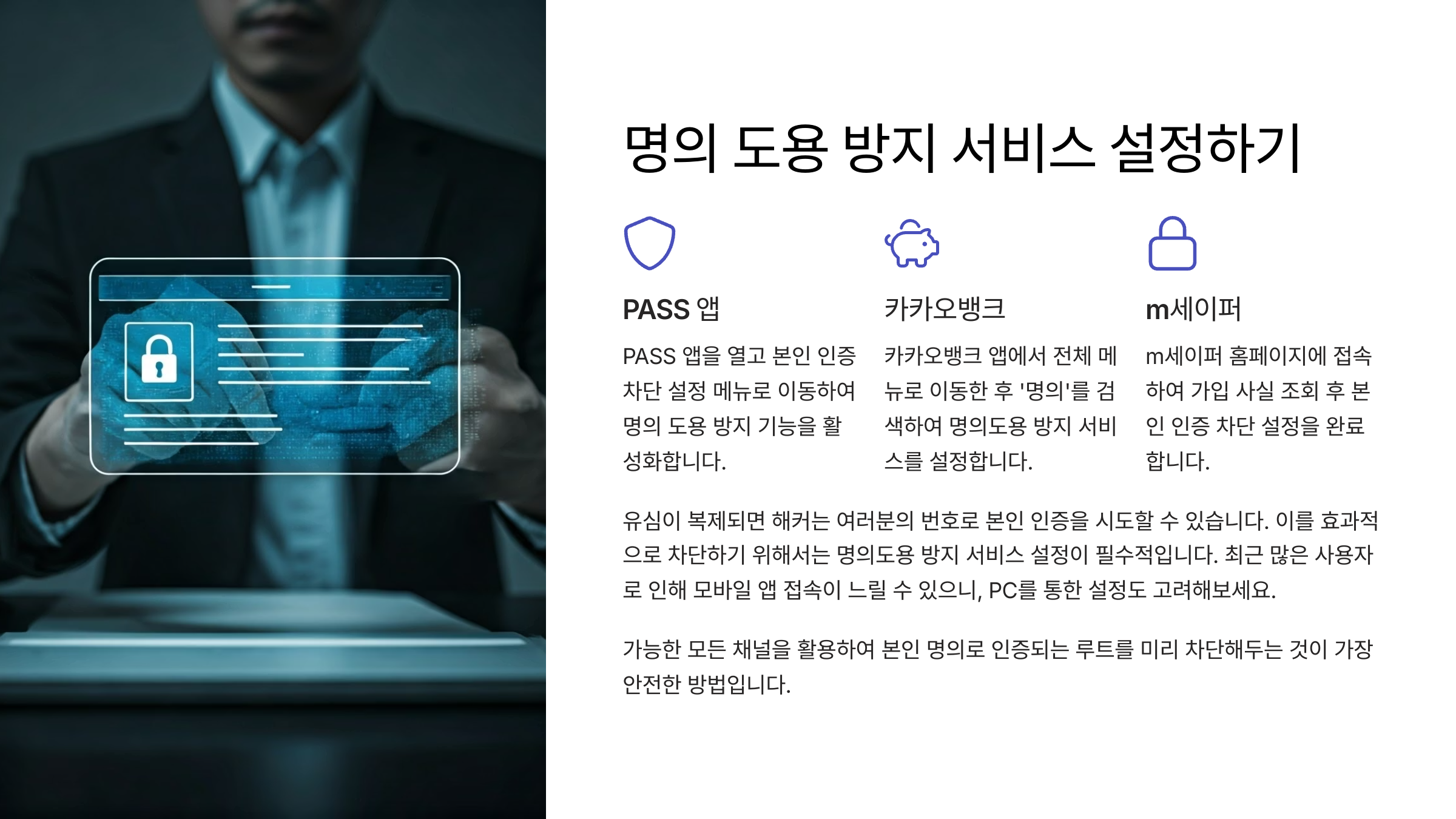 가능한 모든 채널을 활용해 본인 명의로 인증되는 루트를 미리 차단해두는 것이 안전합니다.